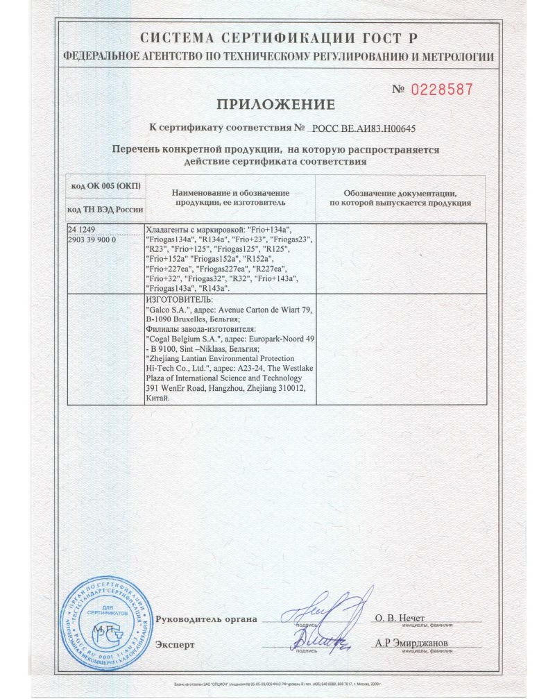 - R23 — для охлаждения до сверхнизких температур.